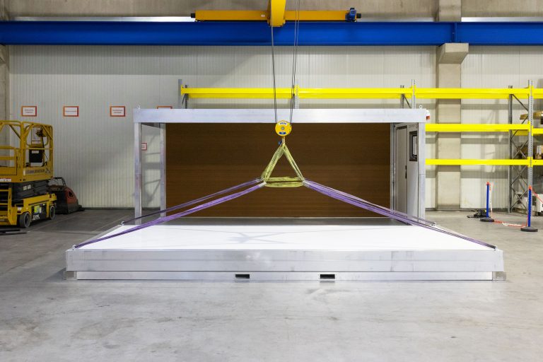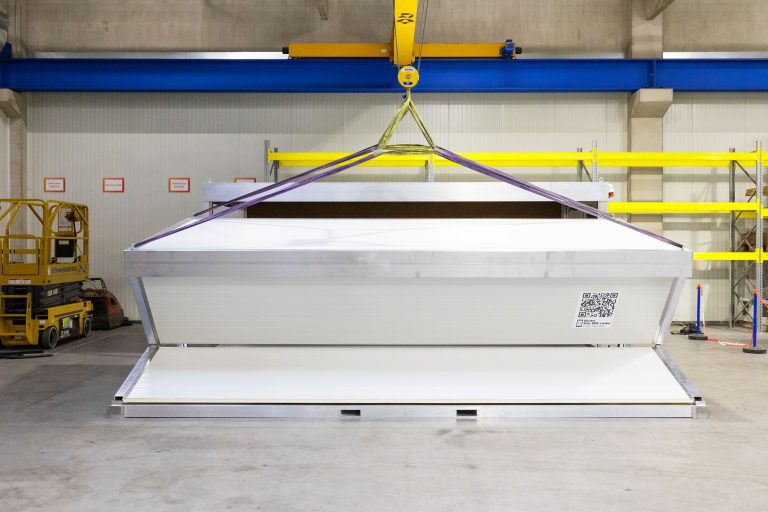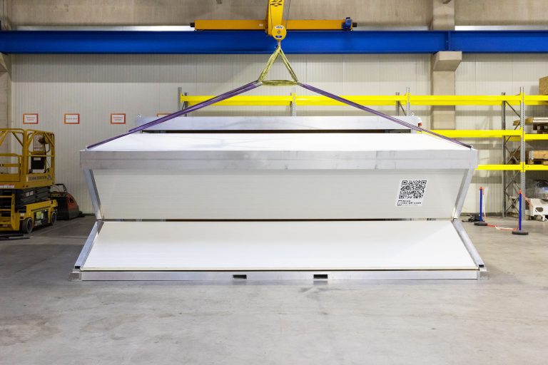 A specially developed 20-foot cargo container allows six foldable units to be stacked and transported together, reducing logistical costs, transport emissions, and environmental impact. This innovation enables humanitarian response that is not only faster and more effective, but also greener and more sustainable.
