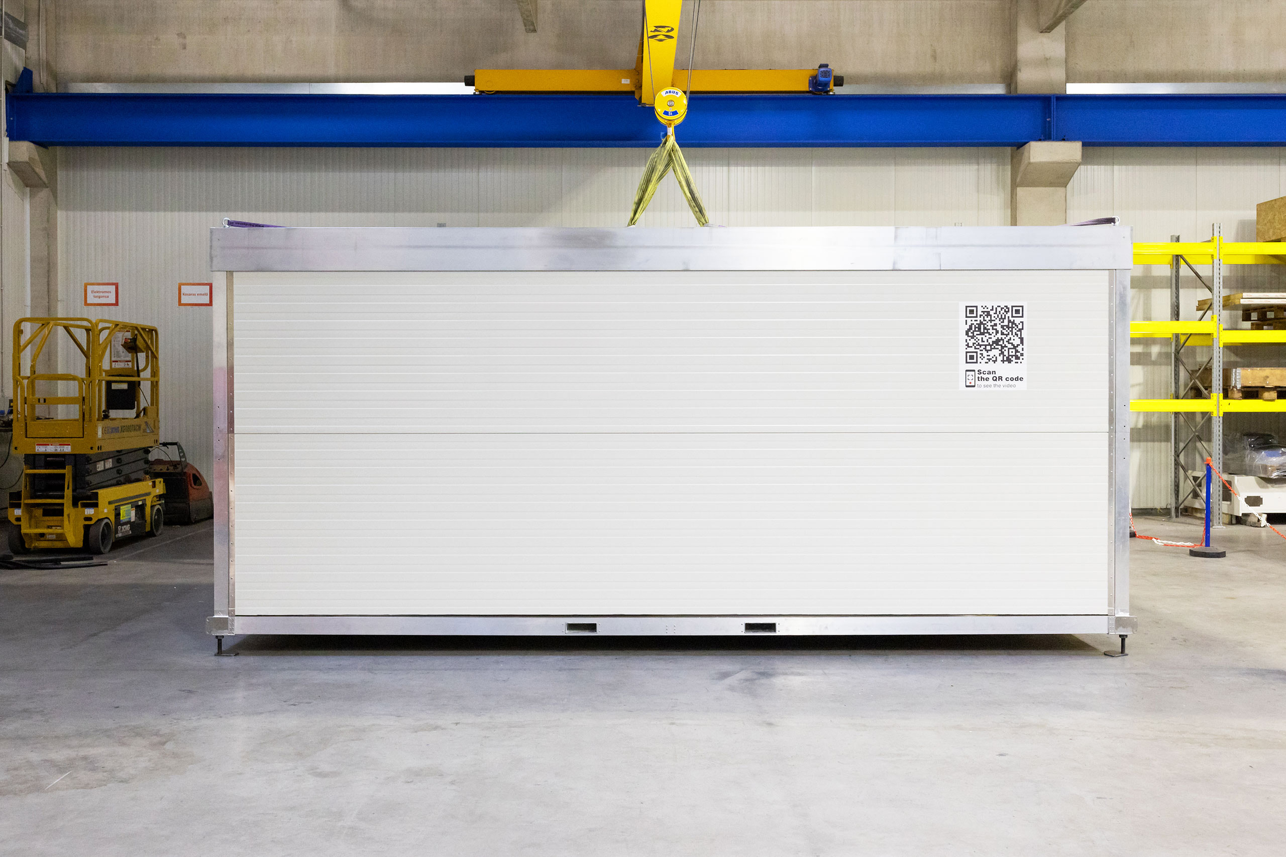 A specially developed 20-foot cargo container allows six foldable units to be stacked and transported together, reducing logistical costs, transport emissions, and environmental impact. This innovation enables humanitarian response that is not only faster and more effective, but also greener and more sustainable.